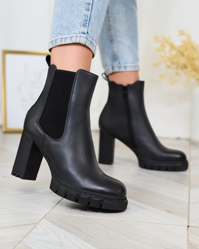 Royalfashion Черные женские сапоги на высоком каблуке Seihay