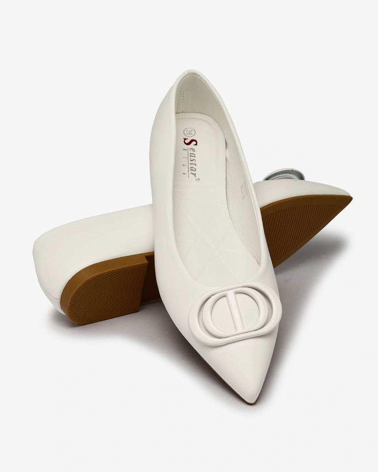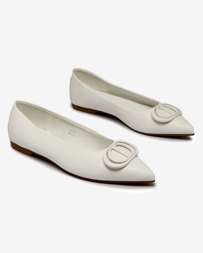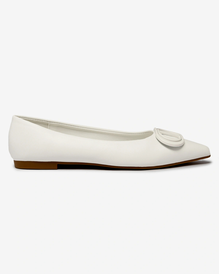 Royalfashion Белые женские балерины с заостренным носом и украшением на носу Manixy
