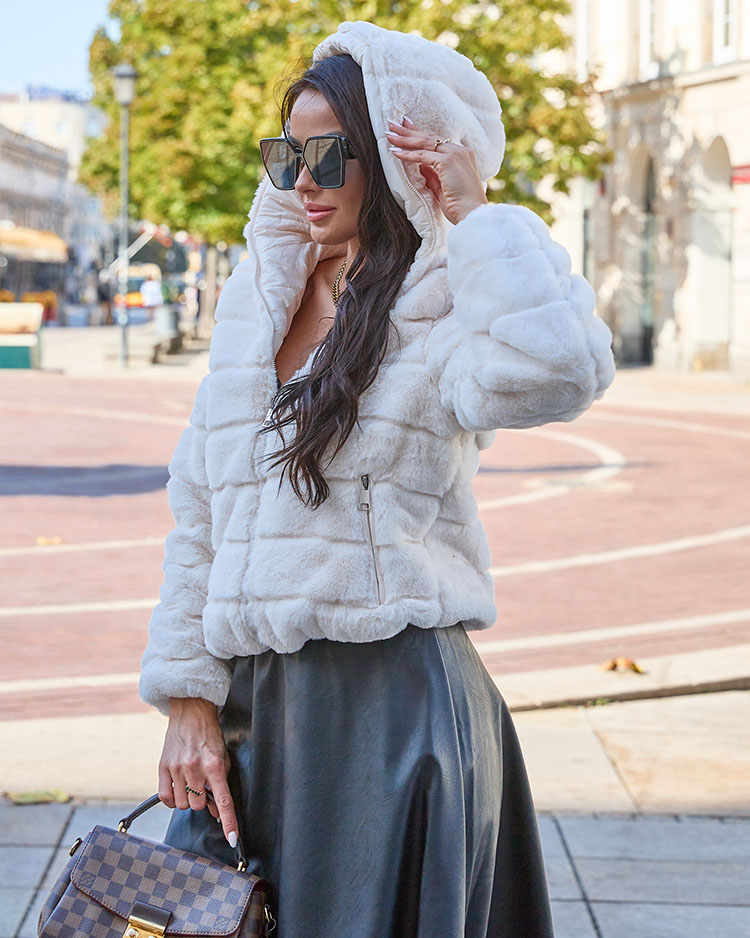 • Сенсационная двусторонняя женская куртка из скользкой ткани и приятного, мягкого материала а'ля мех. Имеет мягкий синтетический наполнитель. Модель с капюшоном, двумя карманами на молнии и застежкой-молнией. Хит этого сезона!