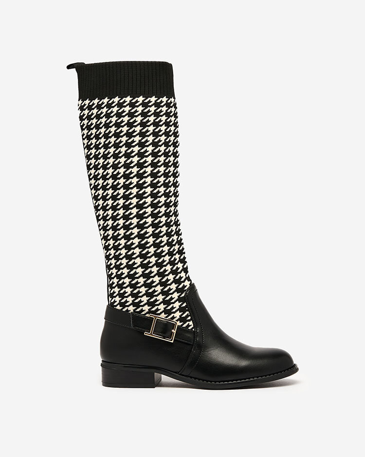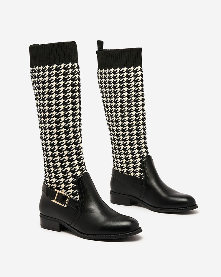 Royalfashion Черные женские высокие сапоги с узором из пепитов Aledive