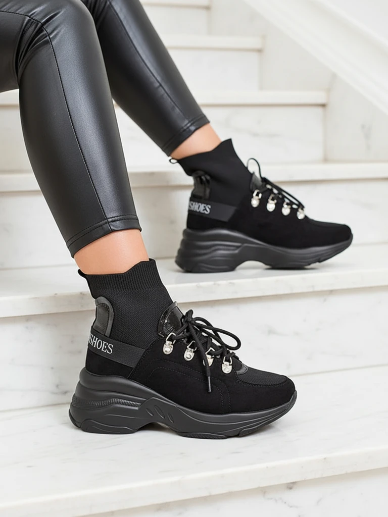 Royalfashion Женские черные утепленные кроссовки Aleppo