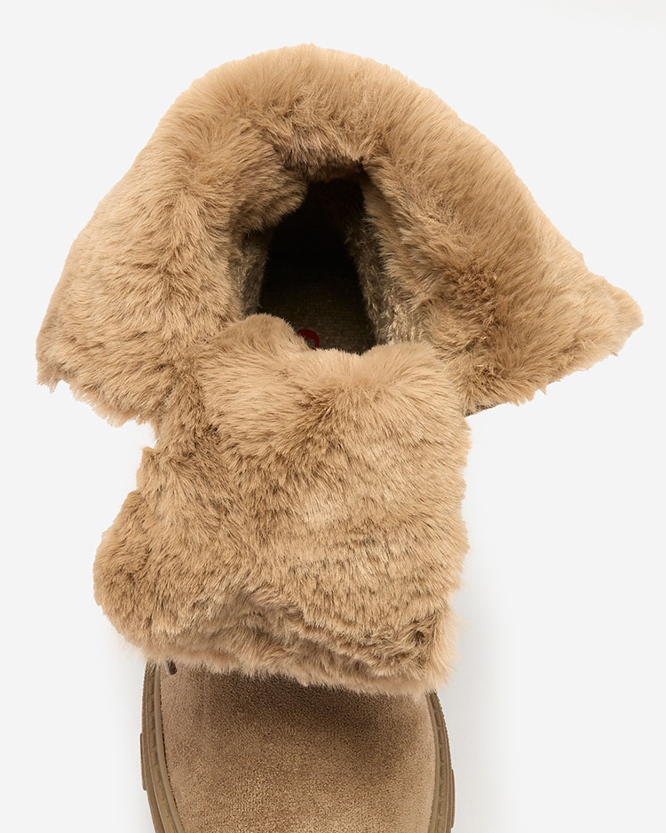 - Стильные ботинки из экокожи с замшей. Сапоги зашнурованы, имеют утолщенную резиновую подошву и центральную часть, заполненную мягким мехом. Идеальный вариант для осени!