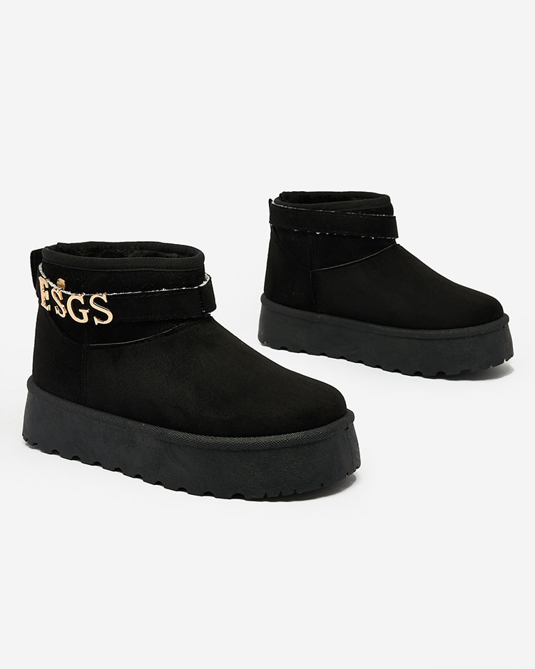 • Мега стильные женские утепленные сапоги из экологичной замши. Они имеют центральную часть, заполненную мехом а'ля овчина. Кроме того, съемный таз украшен надписью. Ботинки на высокой платформе - идеальный вариант для зимних повседневных нарядов!