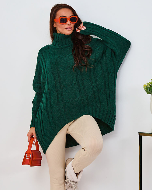 Royalfashion Женский кобальтовый свитер с асимметричной водолазкой
