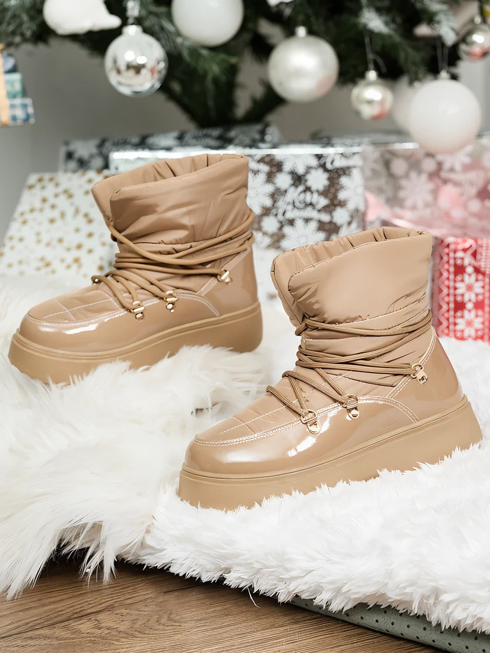 - Нестареющие женские сапоги-скороходы. Верх выполнен из материала a'la cerata, вставки из лакированной экокожи. Внутри утепление в виде меха, шнуровка на ноге. Идеальный вариант для холодного времени года!