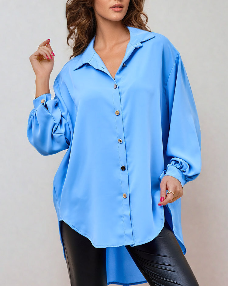 - Сенсационная женская рубашка с длинными рукавами. Модель с отложным воротником, застегивается на пуговицы. Должна быть в гардеробе каждой женщины!