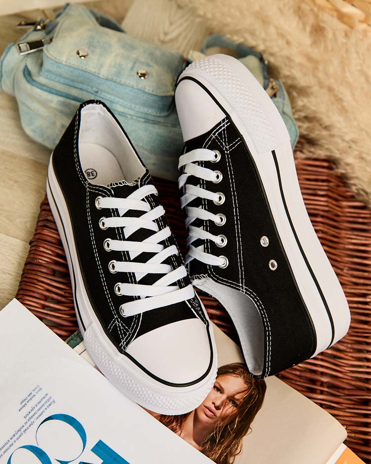 - Стильные женские спортивные кроссовки из тканевого материала. Модель на удобной платформе. Верхняя часть украшена шнуровкой. Отлично подойдут для создания повседневных нарядов!