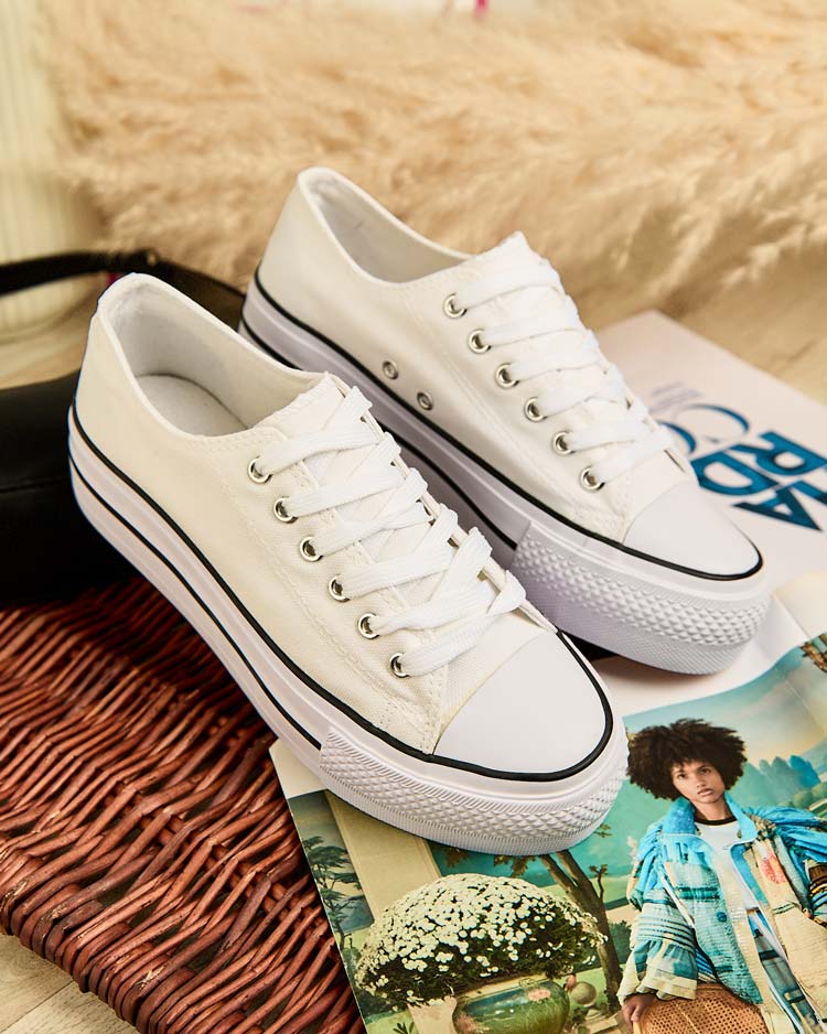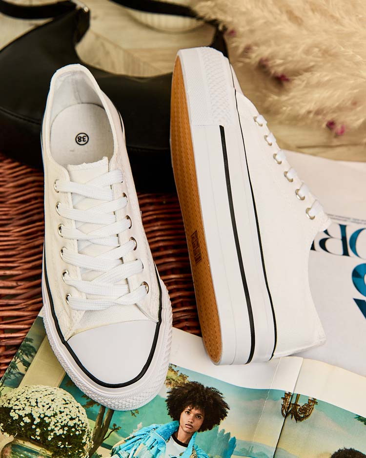 - Стильные женские спортивные кроссовки из тканевого материала. Модель на удобной платформе. Верхняя часть украшена шнуровкой. Отлично подойдут для создания повседневных нарядов!