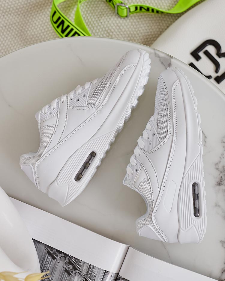 • Stylowe damskie sznurowane buty sportowe wyższej podeszwie. Cholewka wykonana z połączenia skóry ekologicznej oraz materiału tkaninowego. W środku tkaninowa wkładka. Wygodne obuwie na co dzień!