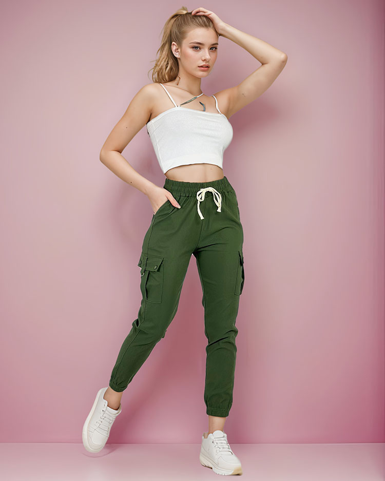 - Удобные женские боевые брюки из приятной на ощупь ткани. Модель имеет 4 кармана, в том числе по бокам. Брюки имеют резинку и завязку на талии.