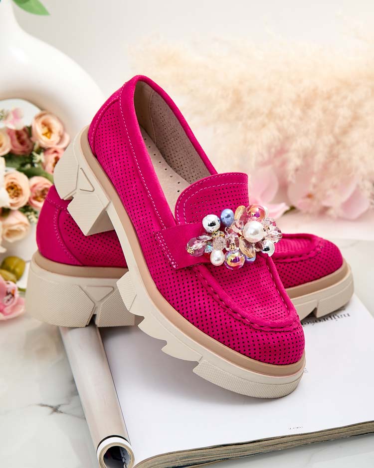 - Красивые мокасины на сплошной подошве - это сочетание стиля и комфорта. Изготовлены из органической замши с ажурной отделкой. Стелька из натуральной кожи. Нос, украшенный разноцветными кристаллами, придает им необыкновенный шик и шарм.