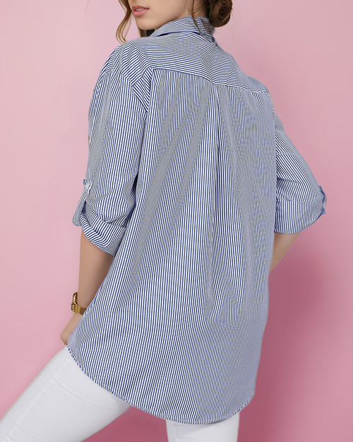 - Сенсационная женская рубашка в полоску с длинными рукавами. Модель с отложным воротником, застегивается на пуговицы. Обязательно должна быть в шкафу каждой женщины!