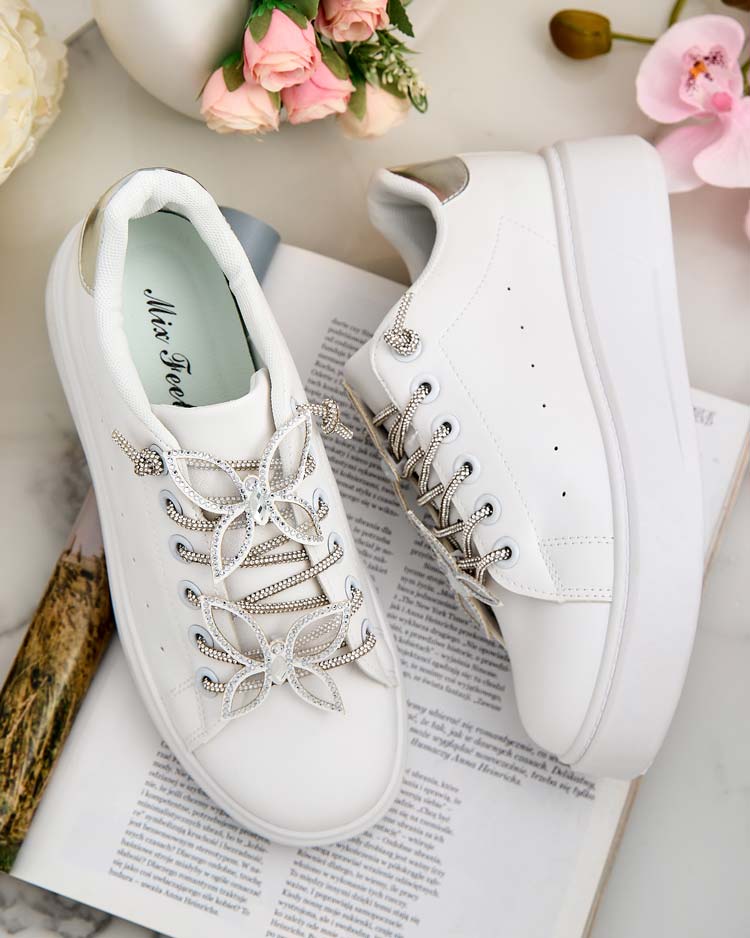 • Кожаные женские кроссовки Eko на толстой подошве - идеальное сочетание стиля и комфорта. Модель на шнуровке, имеет парчовую отделку с бабочками. Идеальный вариант для активных людей!