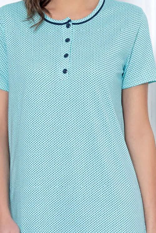 • Очень удобная сорочка с коротким рукавом. Изготовлена из 100% хлопка и отделана декоративным принтом. Модель имеет круглый вырез с декоративными пуговицами. ПРИМЕЧАНИЕ: Точность измерения (+/-) 1 см.
