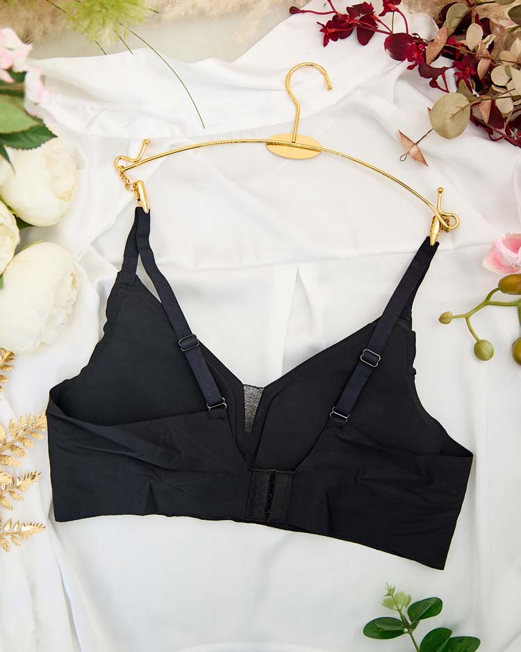 • Бесшовный женский бюстгальтер из эластичного, приятного на ощупь материала. Модель со съемными регулируемыми бретелями и застежкой на крючки и глазки. Он идеально прилегает к телу.