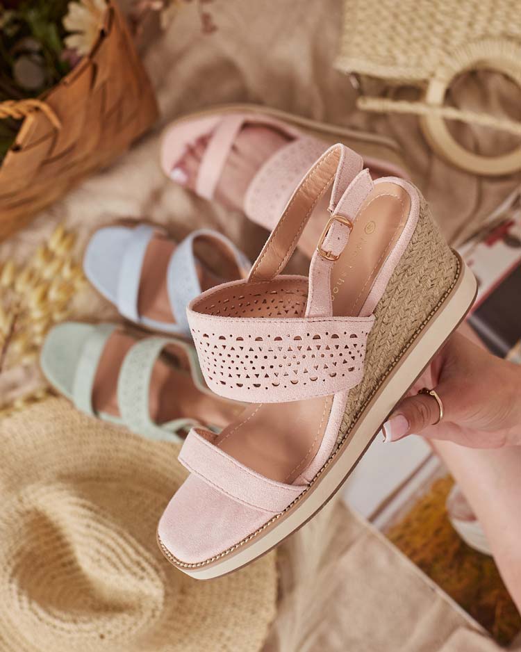 - Женские сандалии на ажурной платформе и платформе, оплетенные декоративным джутовым шнуром. Обувь выполнена из эко-замши, стелька из эко-кожи и застегивается на пряжку. Идеальны для создания модных летних нарядов!