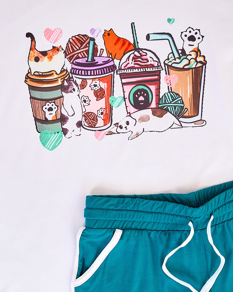 - Женский комплект из приятного на ощупь материала. Модель имеет декоративный принт. Блузка с короткими рукавами и короткие шорты с эластичным поясом. Почувствуйте лето в этом замечательном комплекте!