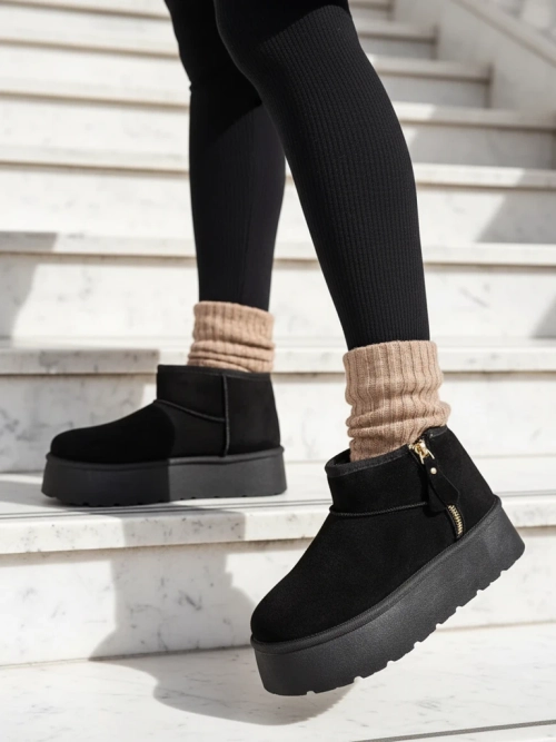 - Отличные женские зимние сапоги на платформе. Верх выполнен из органической замши, середина утеплена мехом. Модель имеет декоративную молнию. Идеальная база для зимы!