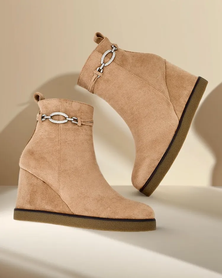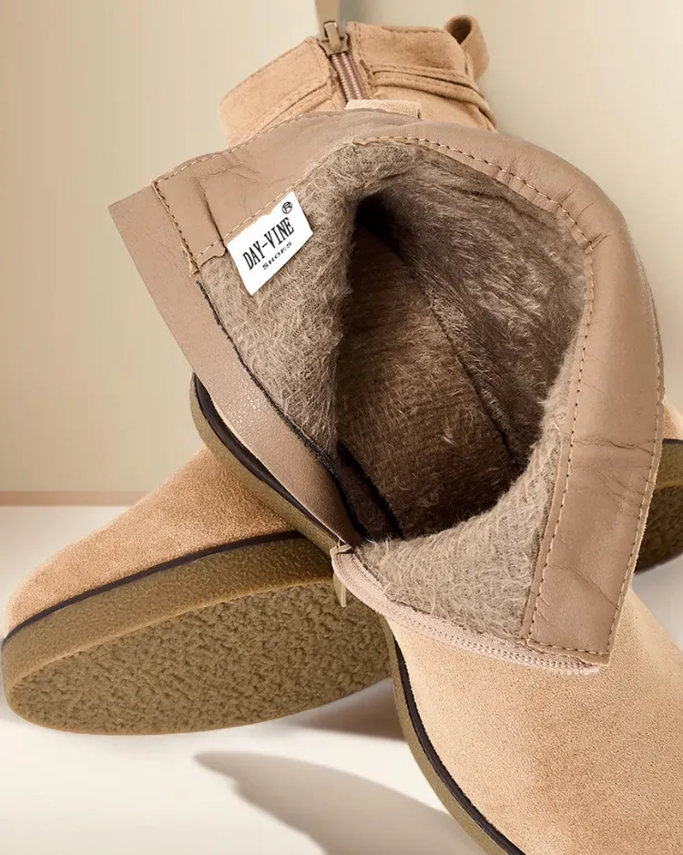 - Элегантные женские сапоги на каблуке, выполненные из эко-замши. Внутри обувь отделана мехом. Прекрасный выбор для осени!