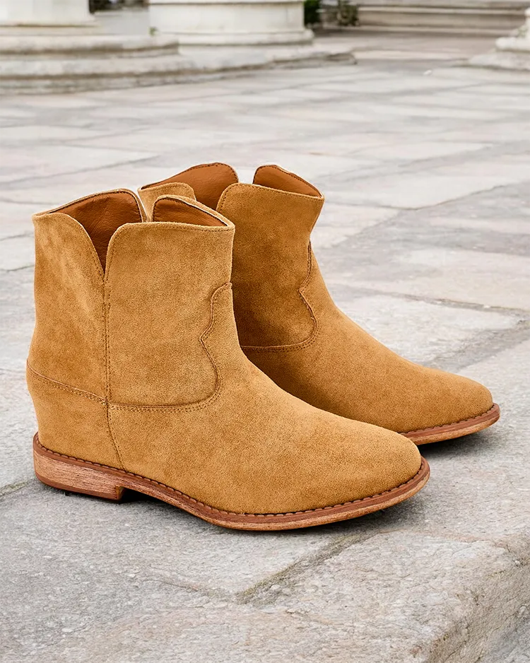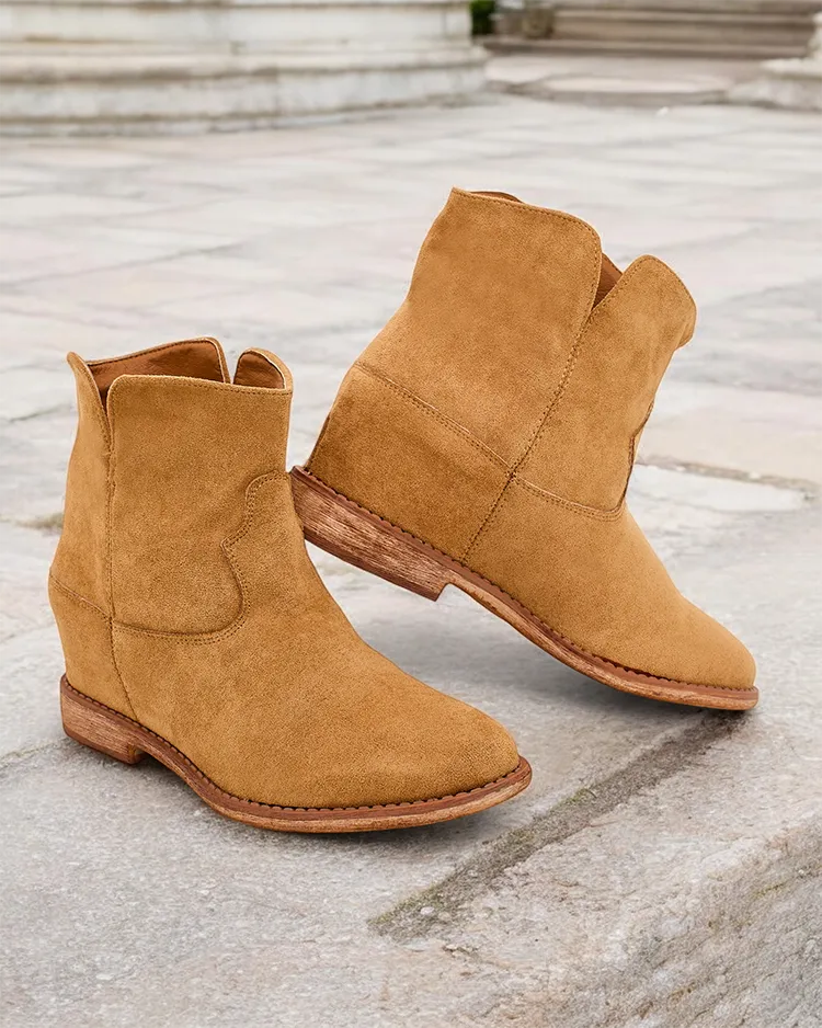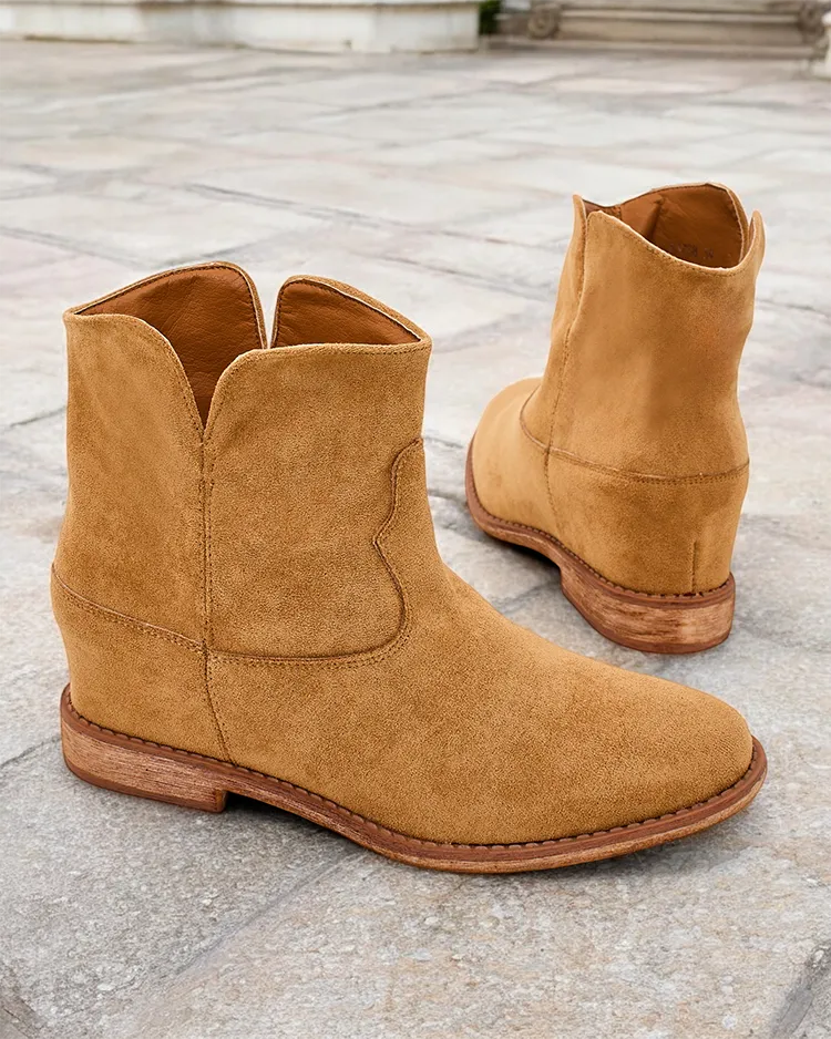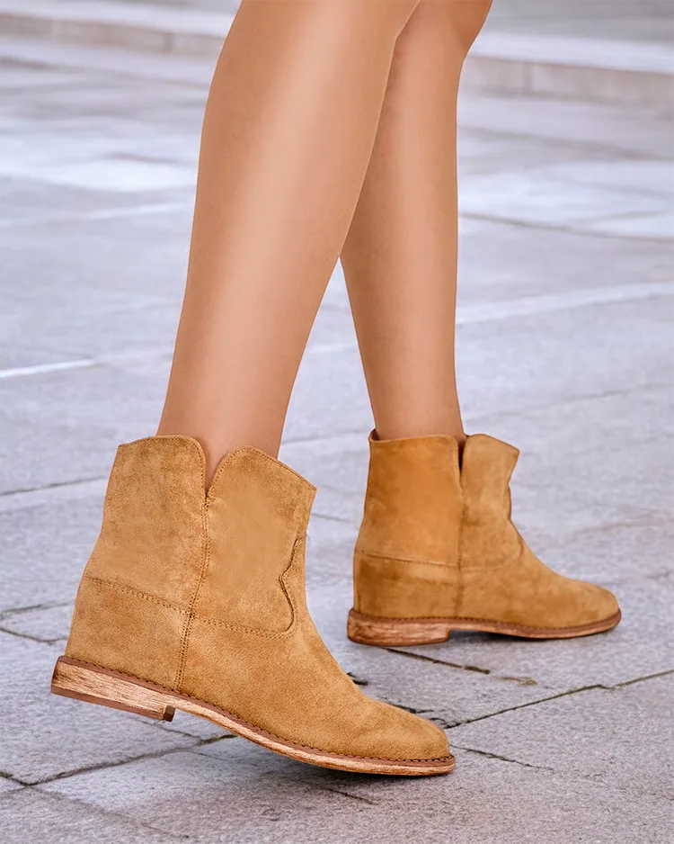 • Классические ботильоны в стиле ковбоя на платформе из серой эко-замши. Женская обувь с меховой подкладкой. Эти сапоги отлично сочетаются с брюками и платьями!