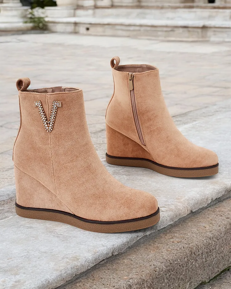 - Элегантные женские сапоги на каблуке, выполненные из эко-замши. Внутри обувь отделана мехом. Прекрасный выбор для осени!