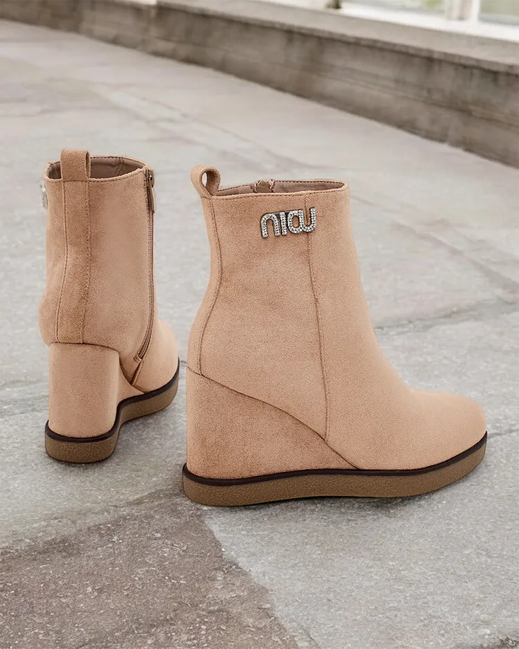 - Элегантные женские сапоги на якорях, выполненные из эко-замши. Обувь наполнена мехом изнутри. Прекрасный выбор для осени!