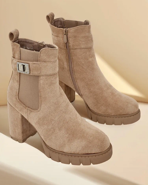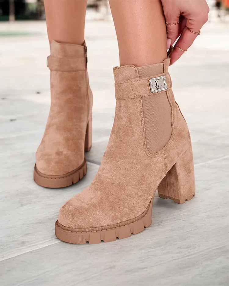 - Ботильоны на стойке - стиль и комфорт в одном. Модель с застежкой на молнии и круглым носком. Обувь из экологической замши. Внутренняя отделка мехом. Идеально подходит для осенних нарядов!