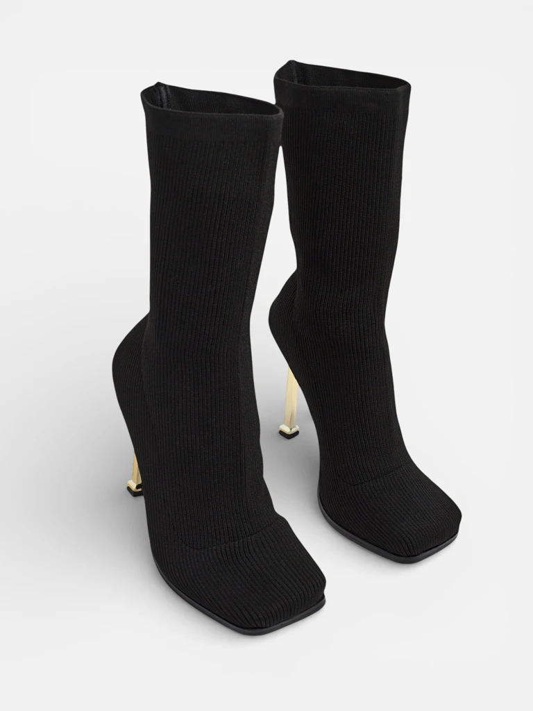• Элегантные ботильоны на шпильке из эластичной ткани, без застежек. Модель имеет квадратный носок. Прекрасная обувь для осенних нарядов!
