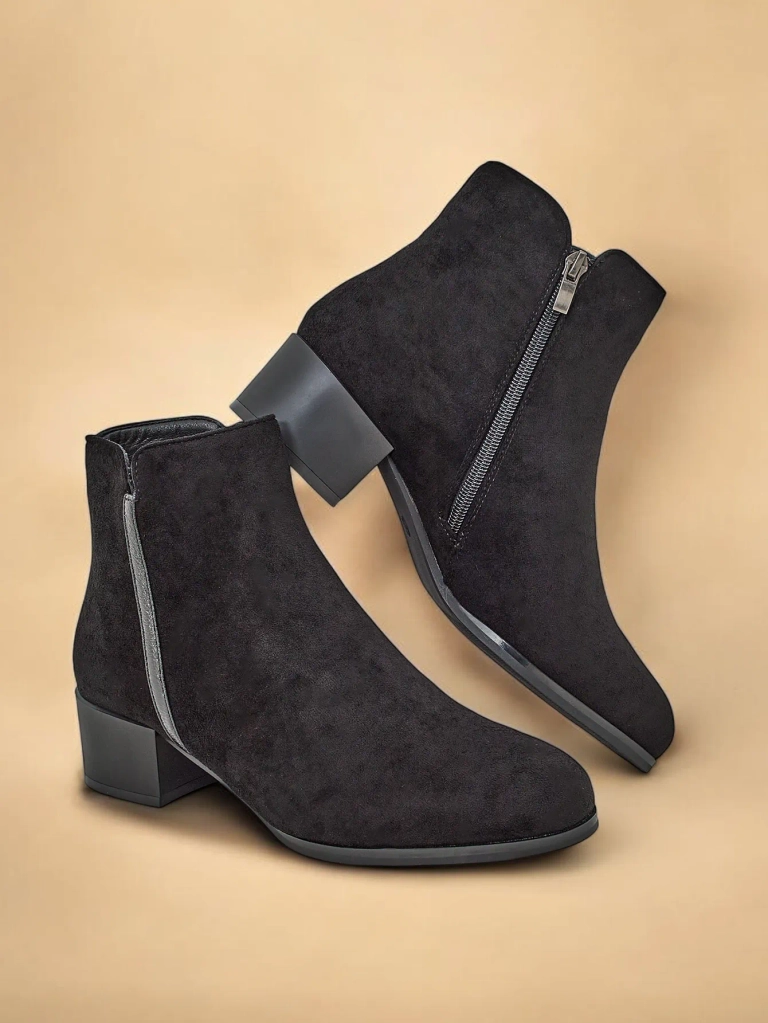 Женские ботинки в элегантном черном цвете - идеальный выбор для осенне-зимнего сезона. Изготовленные из высококачественной экологической замши, они обеспечивают не только модный внешний вид, но и комфорт при ношении. Синтетический материал стельки повышает удобство использования, что делает их подходящими для долгого дня на работе или встреч с друзьями. Плоский каблук высотой 4 см обеспечивает устойчивость и удобство, что делает эти ботинки идеальными для повседневного использования.