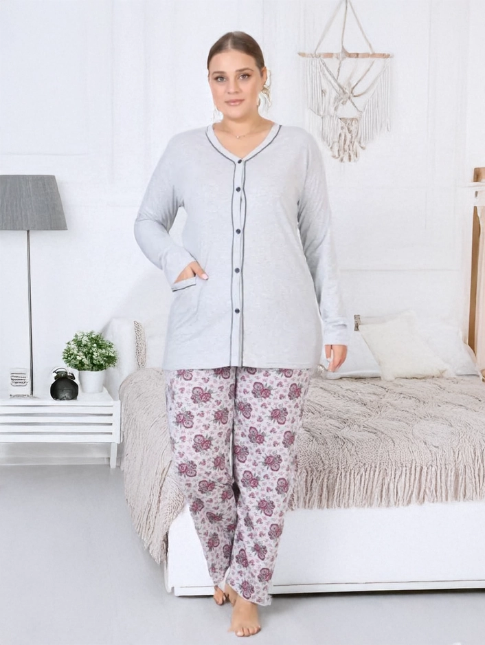 Женская хлопковая пижама Royalfashion в двух частях с цветочным узором БОЛЬШОГО РАЗМЕРА