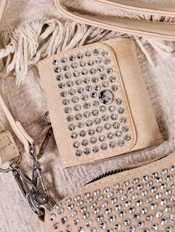 - Элегантная маленькая женская сумка, украшенная заклепками. Модель с застежкой на молнии, имеет 1 отделение и 2 кармана. Сумка комплектуется двумя съемными ремнями и декоративным кошельком. Идеально подходит для официальных выходов!
