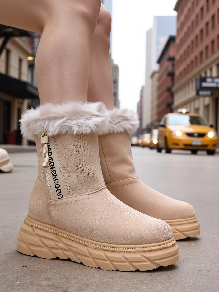 • Женская обувь в виде зимних сапог с верхом из эко-замши, утепленная изнутри мехом. Модель без шнуровки с молнией. Элегантно и удобно!