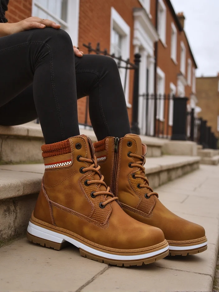 - Женские треккинговые ботинки с шнуровкой и молнией сбоку. Материал изготовлен из искусственной кожи. Внутри обувь утеплена мехом. Идеально для зимы!