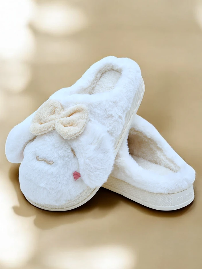 - Удивительные женские тапочки на плоской подошве, украшенные бантом. Модель выполнена из материалов, имитирующих мех. Отличный вариант для домашних нарядов!