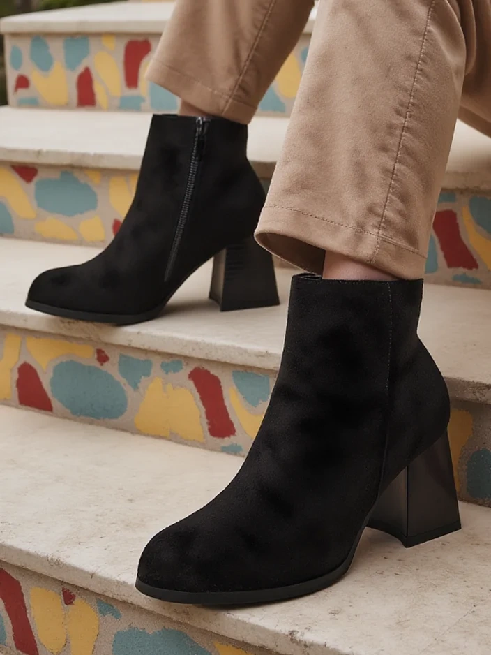 - Удивительные женские сапоги-анклеты на низком каблуке, сделанные из экософт-замши. Модель имеет текстильную стельку и застегивается на молнию. Идеально подходят для осенних нарядов!