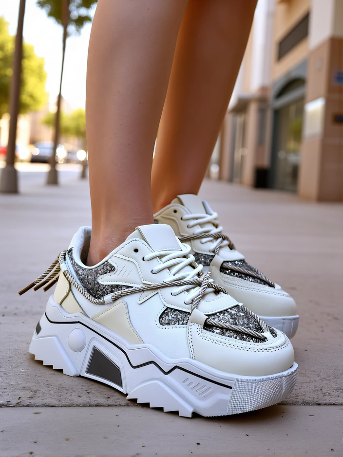 • Женские спортивные обувь в стиле кроссовок с толстой подошвой. Изготовлены из экокожи и ткани, с экокожаной стелькой. Отличное дополнение к вашим повседневным нарядам!