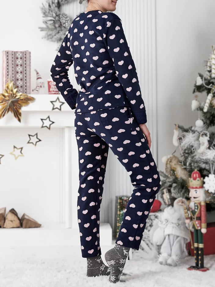 - Женские 2-комплектные пижамы с длинными рукавами и длинными штанами, выполненные из материала, аналогичного флису. Модель украшена принтом. Идеально для уютных вечеров дома! ПРИМЕЧАНИЕ: Точность измерений (+/-) 1 см.
