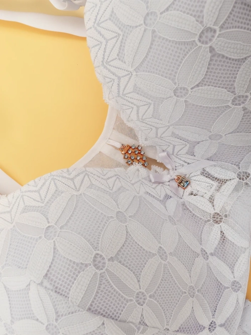 - Элегантный женский бюстгальтер с подкладкой, выполненный из приятного мягкого материала. Модель имеет декоративное кружево и съемные, регулируемые бретели, с застежкой на крючок на спине. ПРИМЕЧАНИЕ: точность измерений (+/-) 1 см.