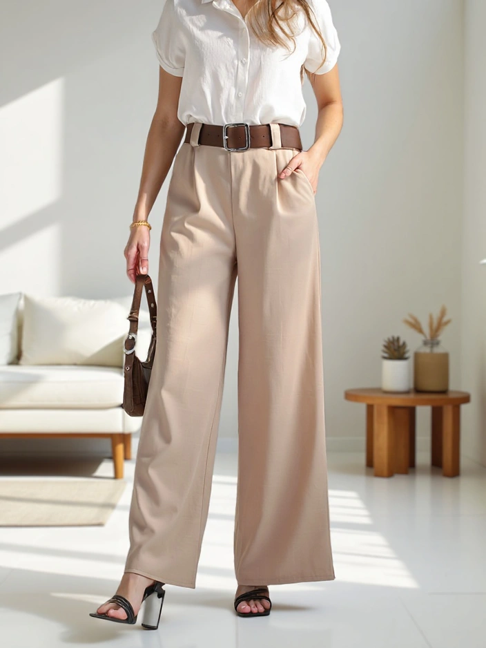- Удивительные широкие брюки из легкой ткани, модель оснащена 2 карманами и эластичным поясом. В комплект также входит пояс. Обязательная вещь в вашем гардеробе! ПРИМЕЧАНИЕ: Точность измерения (+/-) 1 см.