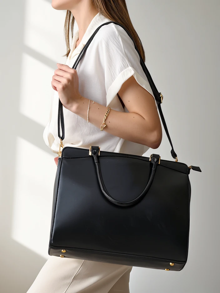 • Большая женская сумка из экокожи на молнии. Модель включает в себя: - 1 отделение с перегородкой; - 1 карман на молнии и 1 карман на кнопке снаружи; - 4 внутренних кармана;