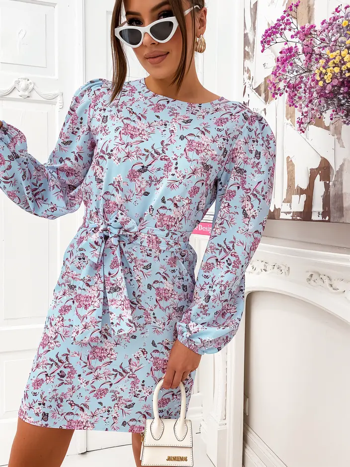 - Цветочное мини-платье для женщин с рукавами-пуфф и поясом, выполненное из легкой ткани. Модель с круглым вырезом, длинными рукавами и поясом, подчеркивающим талию. Отлично подходит для сандалий! ПРИМЕЧАНИЕ: Точность измерений (+/-) 1 см.