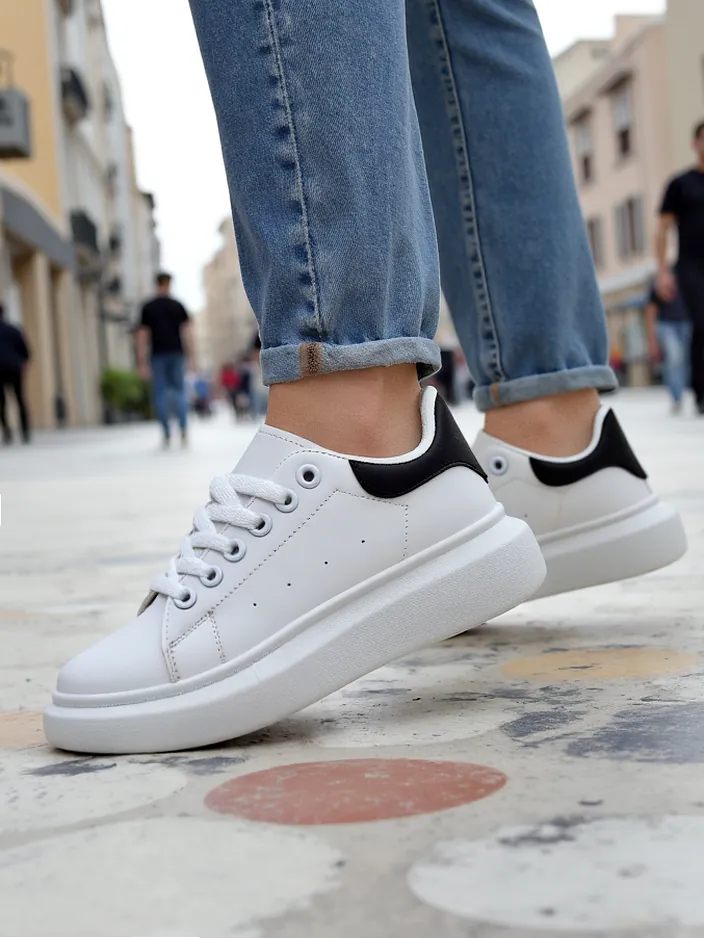 - Оригинальные женские кроссовки с плоской подошвой - идеальное сочетание стиля и комфорта. Обувь изготовлена из экокожи. Модель на шнуровке с экокожаной стелькой. Идеально для активных людей!