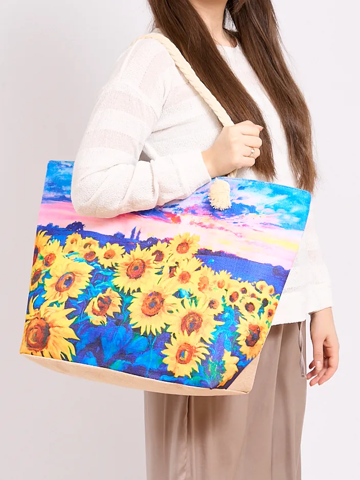 - Стильная тканевая сумка, оформленная принтом. Сумка с длинными ручками, на молнии и одним карманом внутри. Идеально подходит для пляжа!