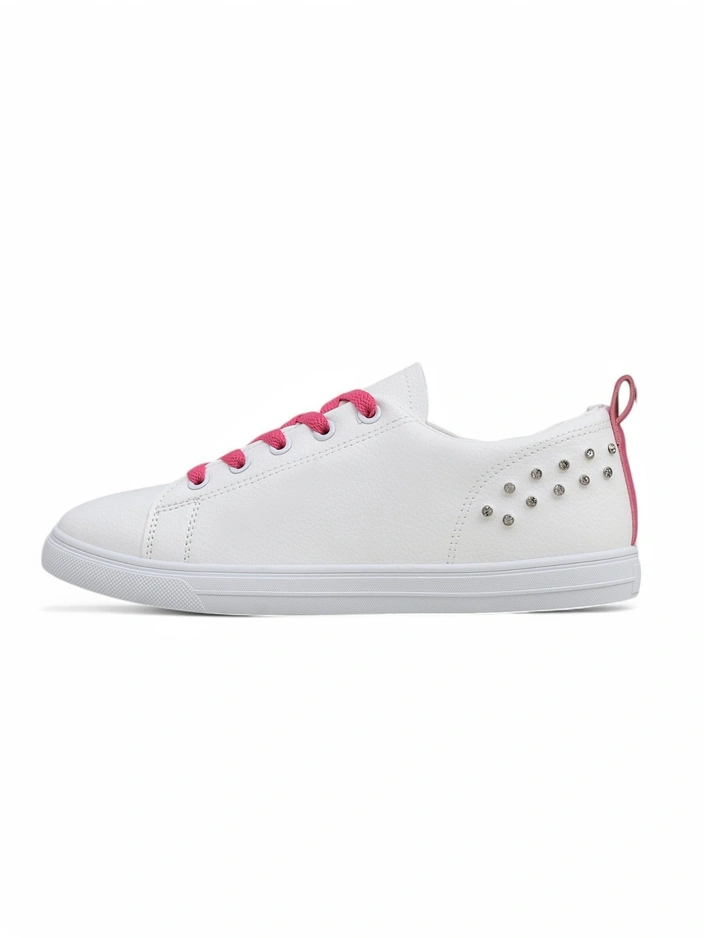 - Оригинальные женские кроссовки с плоской подошвой - идеальное сочетание стиля и комфорта. Обувь изготовлена из экокожи. Модель на шнуровке с текстильной стелькой. Идеально подходит для активных людей!