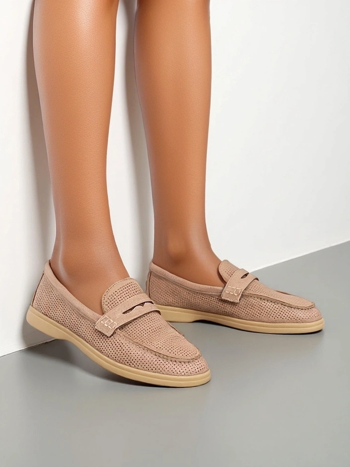 • Перфорированные женские мокасины на плоской подошве. Модель выполнена из экокожи с подкладкой из натуральной кожи. Идеальное дополнение к повседневным нарядам!