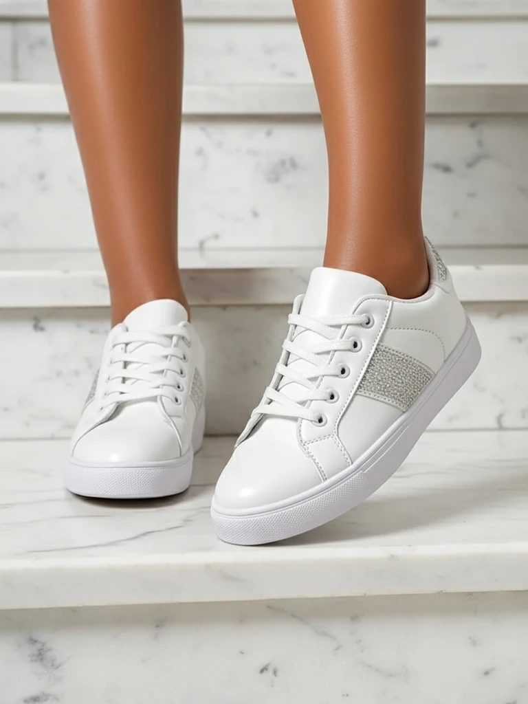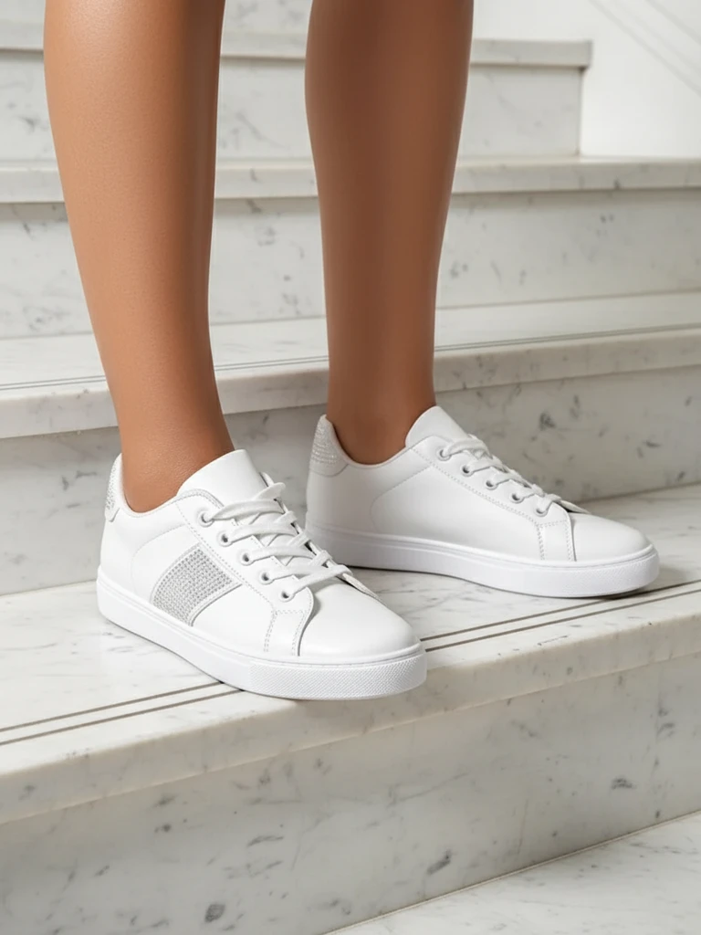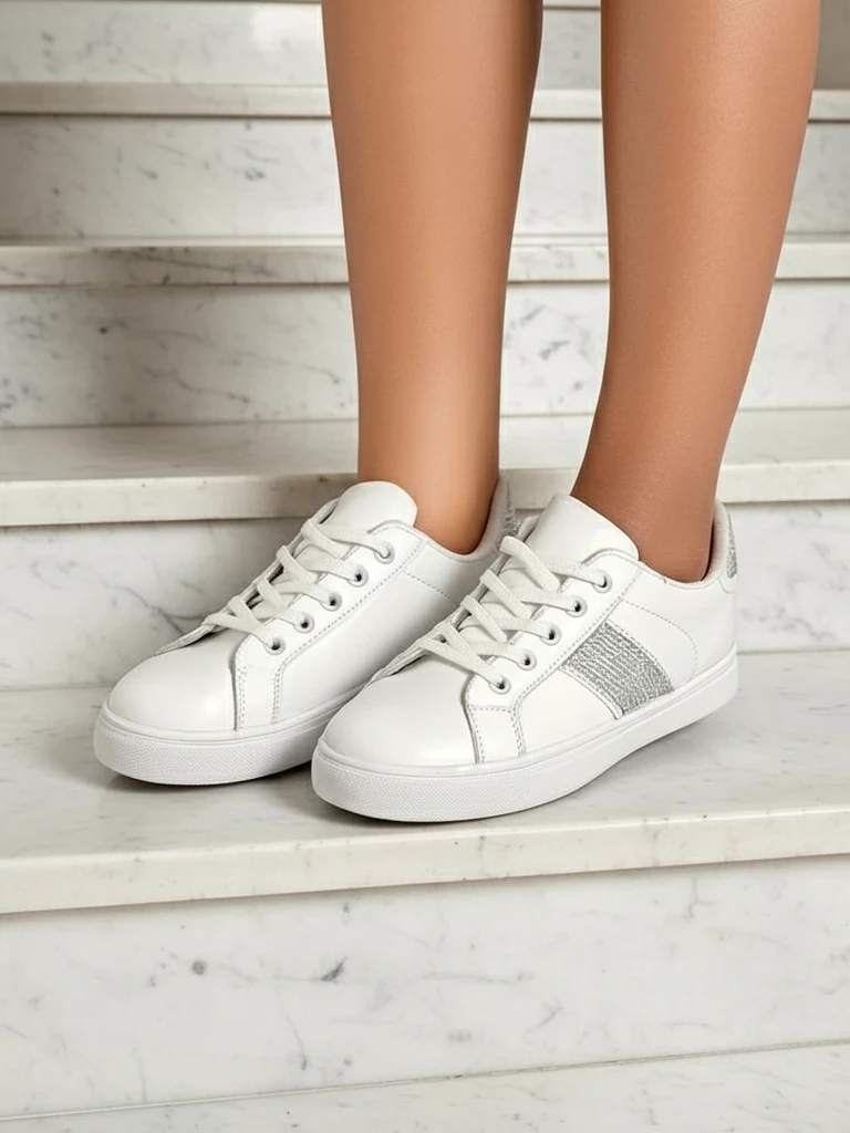 Откройте для себя наши модные белые кроссовки, сочетающие в себе удобство и элегантность. Изготовленные из высококачественной экологической кожи, эти туфли не только эстетичны, но и экологичны. Экологическая кожа, известная своей превосходной прочностью и простотой в уходе, обеспечивает длительное использование. Кроссовки дополнены тканевой стелькой, которая гарантирует комфорт при ношении в течение всего дня и надлежащую циркуляцию воздуха. Среди основных преимуществ наших кроссовок - элегантный дизайн, который подходит для различных стилей, и легкая подошва высотой 2 см, что делает их идеальными как для повседневных выходов, так и для более формальных случаев. Нося эту обувь, вы будете чувствовать себя уверенно и модно, а ее универсальный цвет позволяет сочетать ее с любым гардеробом. У нас есть несколько идей, как стильно сочетать эти кроссовки с вашим нарядом: 1. : Сочетайте их с джинсами и большим свитером для поездок на выходные. 2. : Сочетайте их с воздушным платьем и кожаной курткой для вечернего выхода. 3. : Выберите леггинсы и спортивный топ для спортзала или встречи с друзьями. Ухаживая за этими кроссовками, регулярно протирайте их влажной тканью, чтобы удалить загрязнения. Избегайте интенсивного солнечного света, чтобы свести к минимуму выцветание цвета. Обувь не имеет гарантии, однако ее прочная конструкция гарантирует долговечность. В современном мире моды белые кроссовки из экологичных материалов становятся все более популярными, являясь синонимом как современности, так и экологической ответственности.