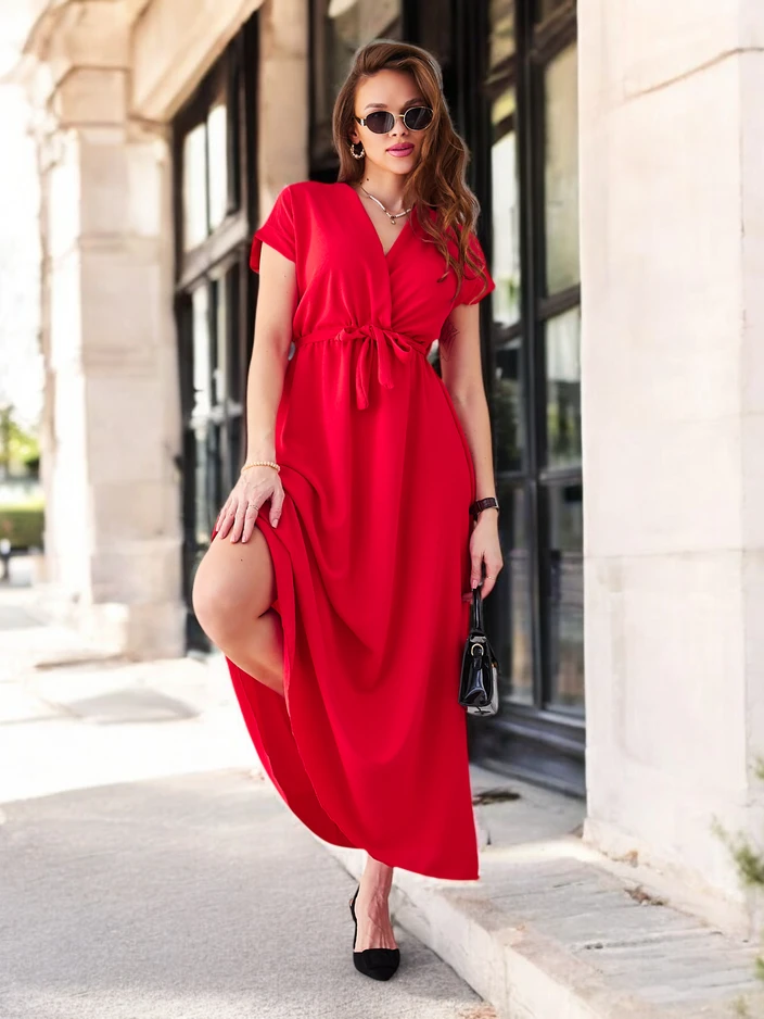 Midi-платье Royalfashion для женщин с обернутым вырезом, короткими рукавами и поясом