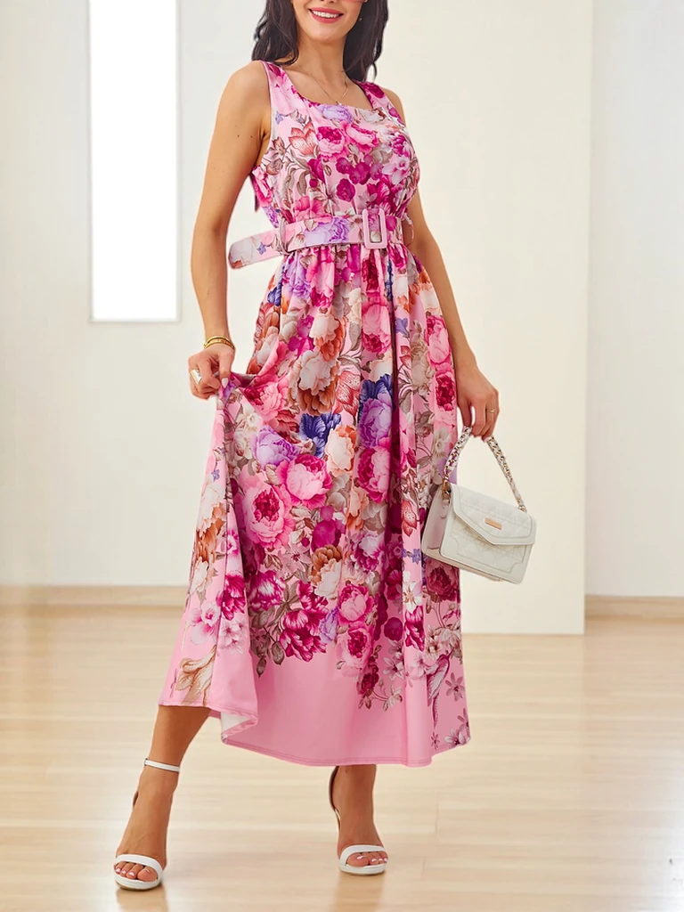 Женское миди-платье Royalfashion с бретелями, featuring a belt в различных цветочных узорах