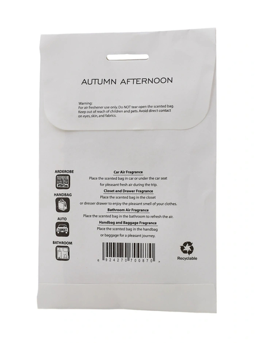 - Ароматные саше – это идеальное решение для придания приятного аромата вашему автомобилю, сумке, шкафу или ванной комнате. Благодаря своей компактной форме, они эффективно устраняют неприятные запахи, оставляя свежий и приятный аромат в каждом помещении!