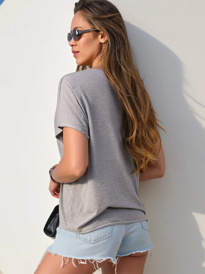 • Блузка женская из вискозы с коротким рукавом и блестящей отделкой – легкая, блестящая и полная тонкого мерцания, идеально подходит для вечерних выходов.